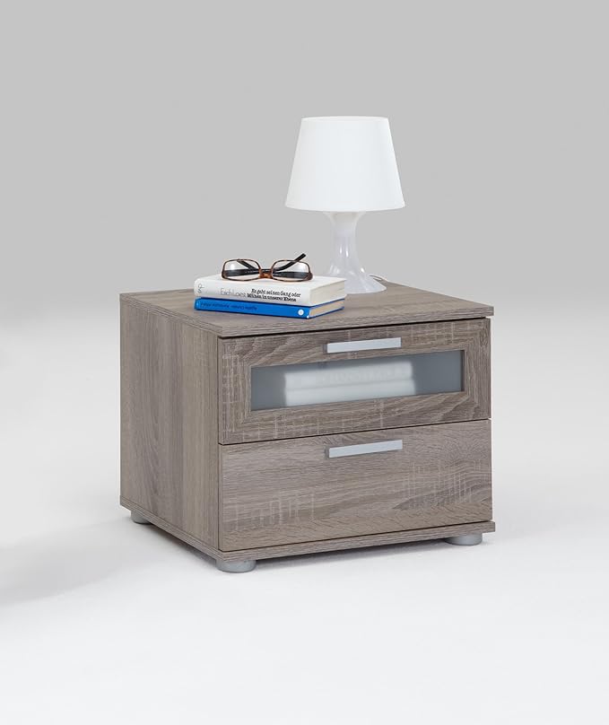 Beech colour melamine durable surface. Silver handles add to this contemporary look. A wide variety of oak bedside drawers options are available to you, such as home furniture. Moreover, there is a choice of handles between small wooden and brass coloured. Its 3 drawers provide ample storage space and it's constructed from real ash veneer with an oak effect finish.